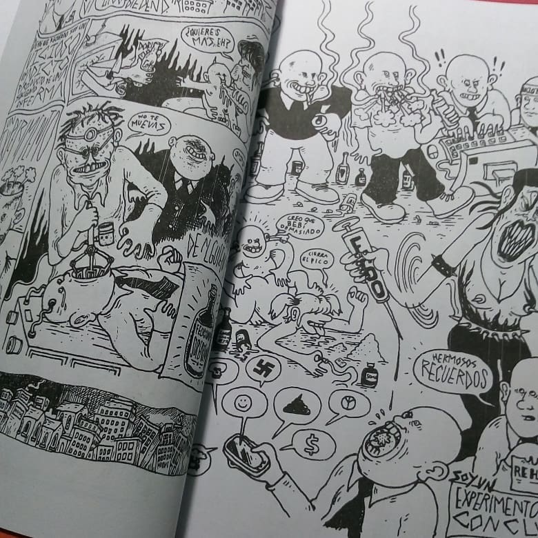 After a chaotic year, Basura #3 has returned from the sewers of Chicali, this time with 24 pages of shitty comix and diarrheal graphics plus a 16-page mini sketchbook. All art by Edén D.