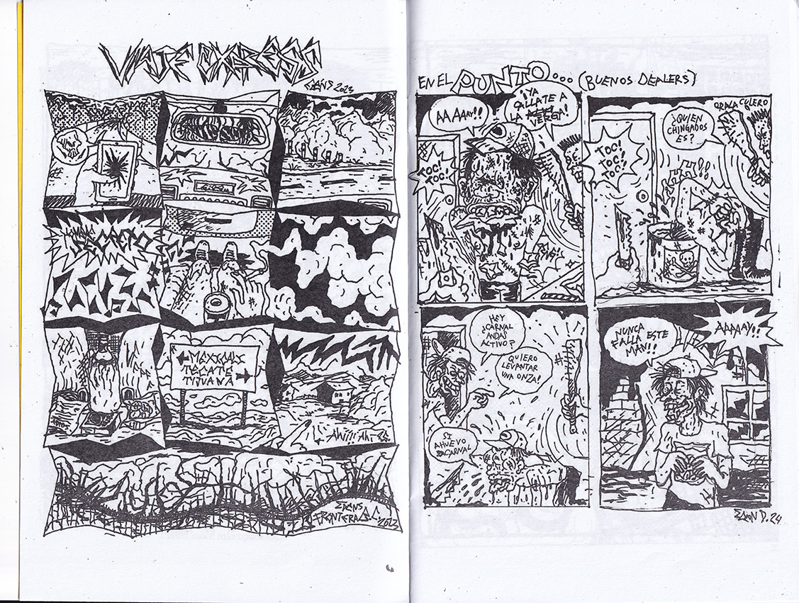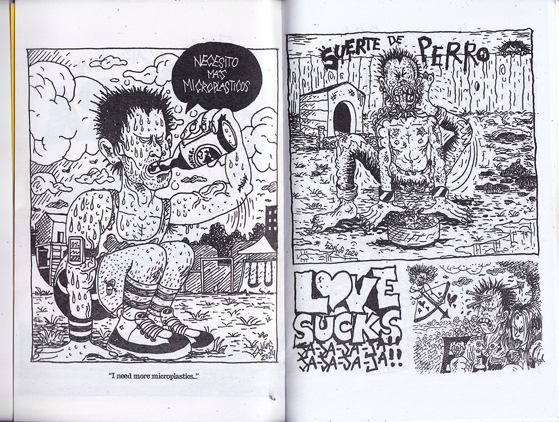 24 pages of punk cartoons and nonsense comix by Edén D. Drawn between 2022-25. Printed in Guadalajara, Mexico. Spanish and english. 200 copies.
