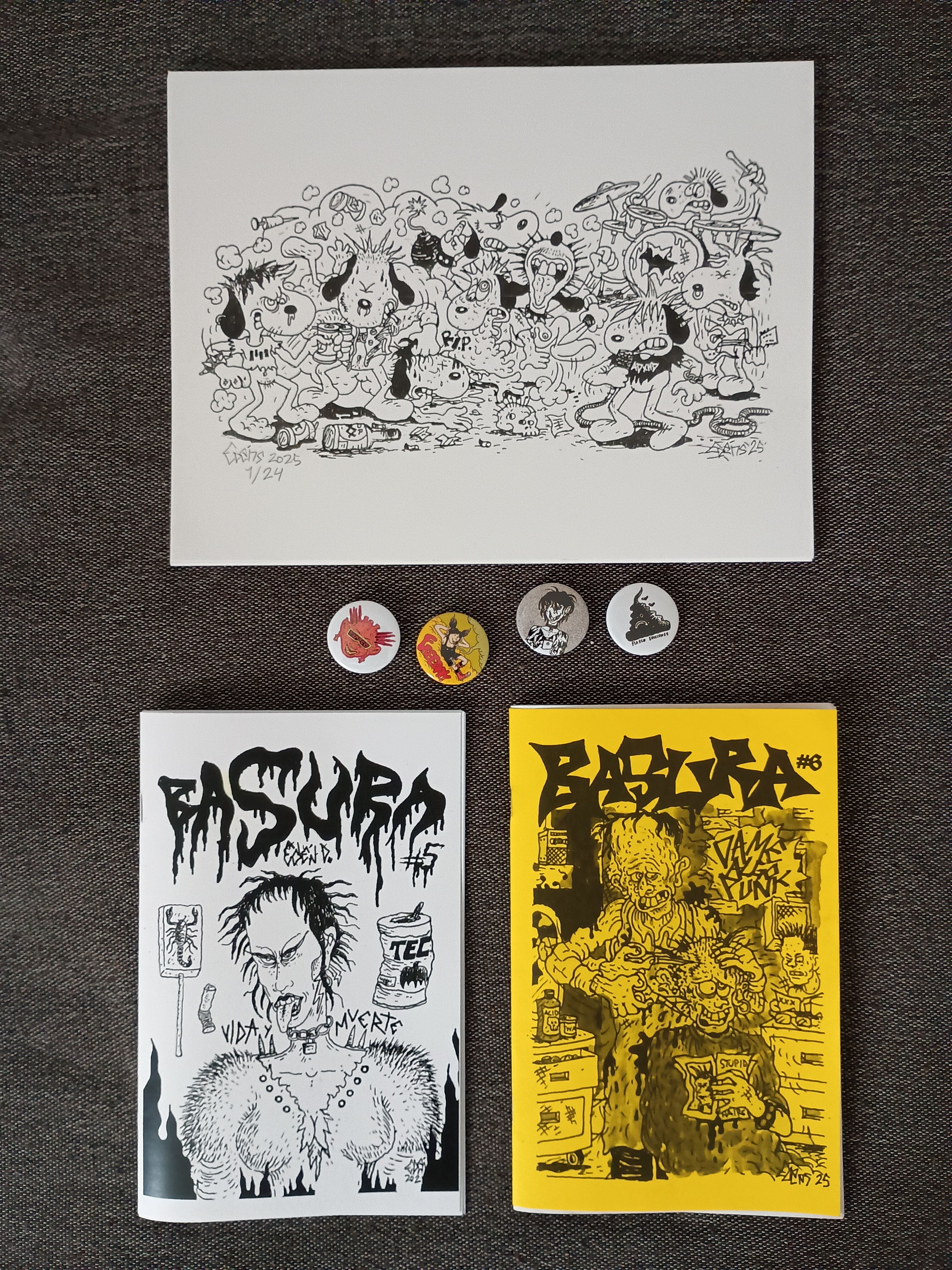 Basura Zine #5 (2022) Basura Zine #6 (2025) 1 Riso print (Snoopy Punks, limited edition of 24) 4 buttons